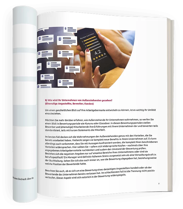 Positionieren Sie sich als attraktiver Arbeitgeber und optimieren Sie Recruiting und Mitarbeiterbindung. Im kostenlosen Leitfaden lesen Sie, wie Sie jetzt effektives Employer Branding in Ihrem Unternehmen umsetzen und von zahlreichen Vorteilen profitieren: